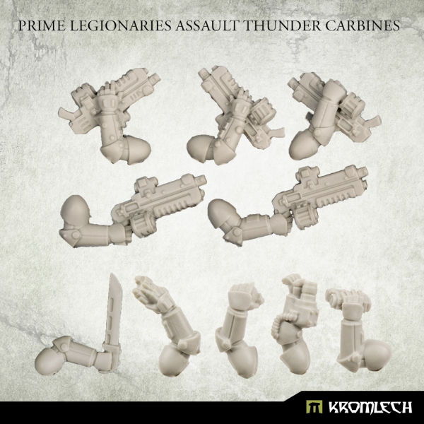 This set contains 5 high quality resin Prime Legionaries Assault Thunder Carbines and 5 additional arms with Legionary gear.