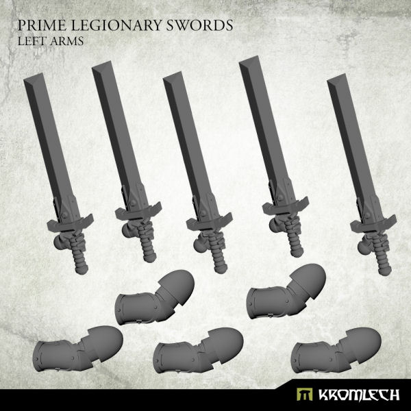 This set contains 5 high quality resin Prime Legionaries swords with 5 corresponding arms. Designed to fit heavy armoured troopers in 28mm heroic scale. Great for representing heavy assault squads of Prime Legionaries.