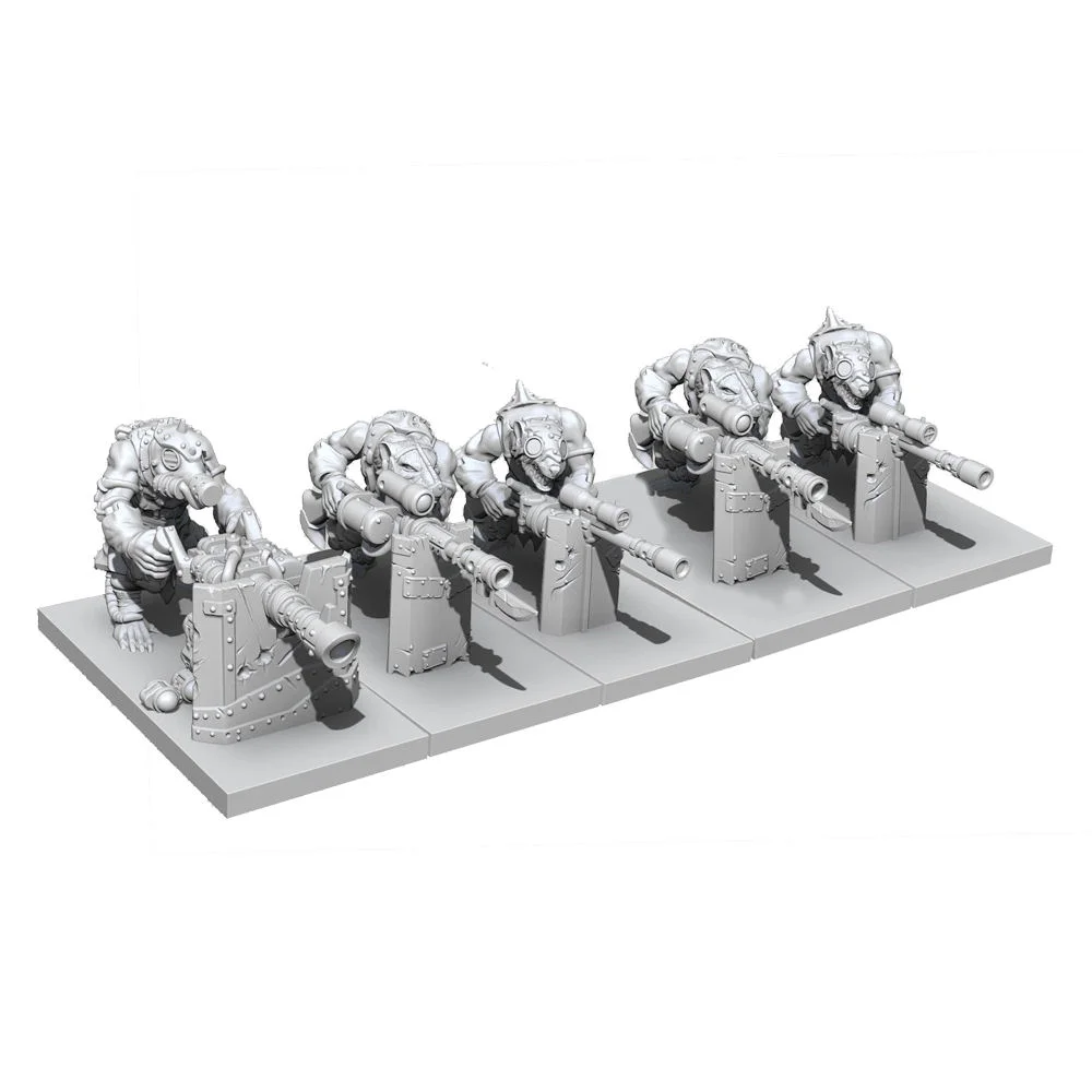 Taking the art of lethality from afar to extremes, the Ratkin Clawshot rifle is an arcane, long - barrelled contraption, beloved of individuals who prefer to strike the enemy from the safety of a hilltop (and behind a pavise). It's easier to run away downhill, too. Contents: 5x Ratkin Clawshots