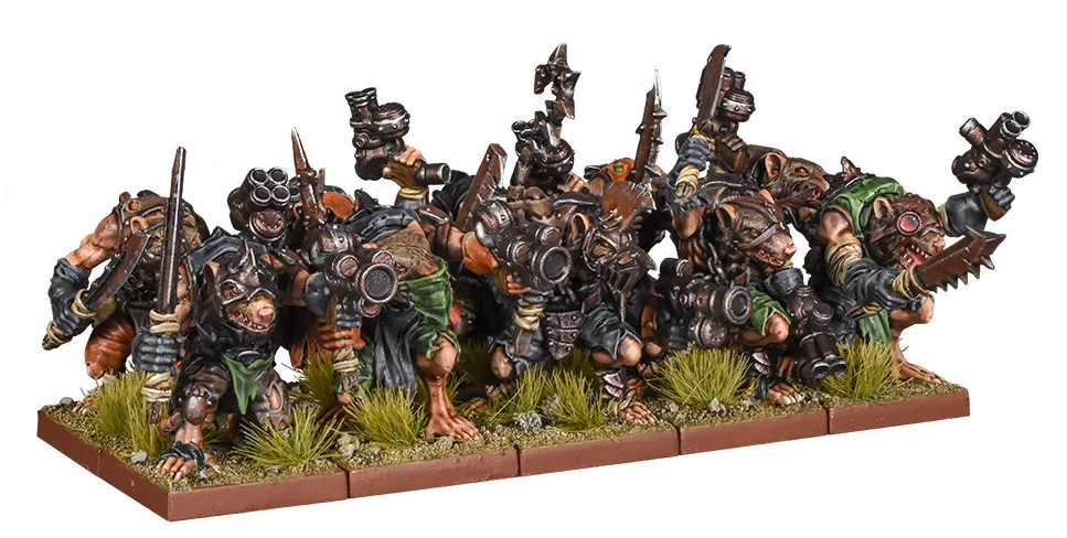 Scurrier teams train and act as scouts. They are agile and adept at striking enemy weak points (from a distance – they wouldn’t like to get too close). Armed with lethal blight thrower pistols, these stealthy Ratkin stalk enemy encampments and towns, sowing discord and sabotage in advance of the main army’s arrival.