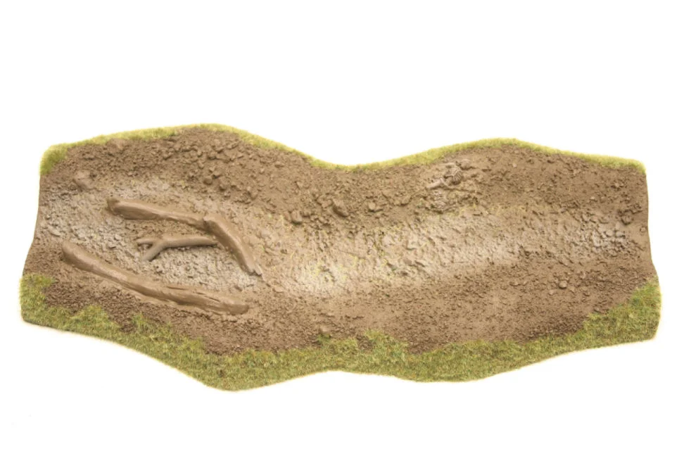 At any time the terrain was one of the main keys of a battle. At any time the headquarters rack their brains how to use the topography to their advantage. Water terrain like: rivers, torrents, waterfalls, lakes, marshes or pools are natural obstacles also in tabletop games. Bridges became strategic targets which you have to concer or to defend. For targets like offspring pools some armees would die for to shelter. Info: This model is made of Structure Hardfoam. It is: - lightweight and durable - easy to paint - use a file or sandpaper for fine edges - cut with a knife or fretsaw - form in hot water Size: 11.5 x 5.5 x 0.6 inch