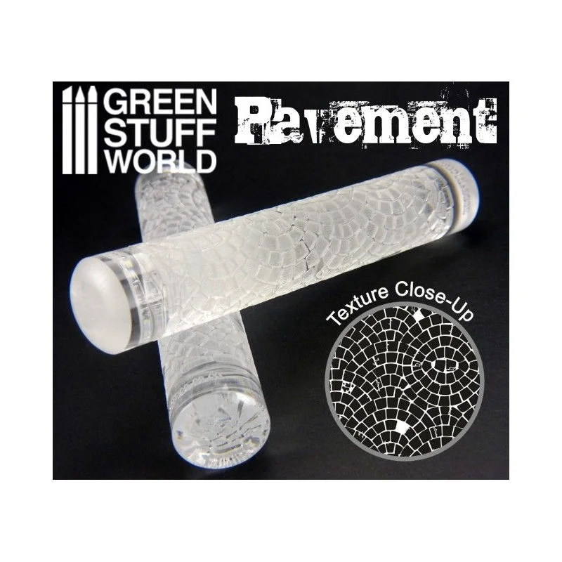 For Green Stuff putty, which is especially sticky, it would be required to wet either the putty or the Rolling pin with some water before texturing. You may also reduce the stickiness by applying talcum powder in the water, or even using Vaseline or oil.