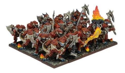 Hot Blooded creatures who possess a strange natural mastery over fire, Salamanders are slow to anger but once they do, their rage burns as hot as the blood in their veins. This set contains 20 multi-part hard plastic Salamander Miniatures, including: Head Options One-handed Weapons and Shields Two-handed weapons Command Options 25mm Bases Mantic Point Models supplied unassembled and unpainted.