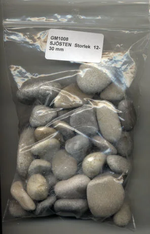 SJÖSTEN Storlek 12-30 mm (Sorterade och tvättade stenar, rundslipade av havet. Passar utmärkt för modell/terrängbygge 300 g/påse.)