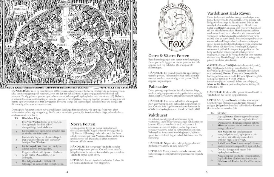 Skuggan över Dunkeldäld är en äventyrsplats/sandlåda med gotiskt skräcktema. Följ äventyrets huvudspår eller skapa ditt eget äventyr i Dunkeldäld med hjälp av mängder av tabeller och annat material som återfinns i modulen. Boken har bland annat inspirerats av Tim Burtons Sleepy Hollow, Dracula och Curse of Strahd. Under speltesterna har det tagit mellan 2-4 speltillfällen att köra, men det finns tillräckligt med material för att köra betydligt längre än så.