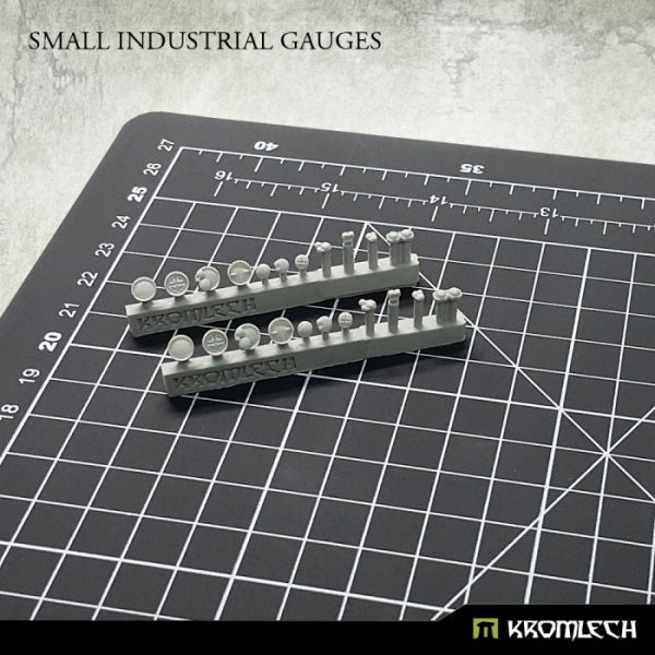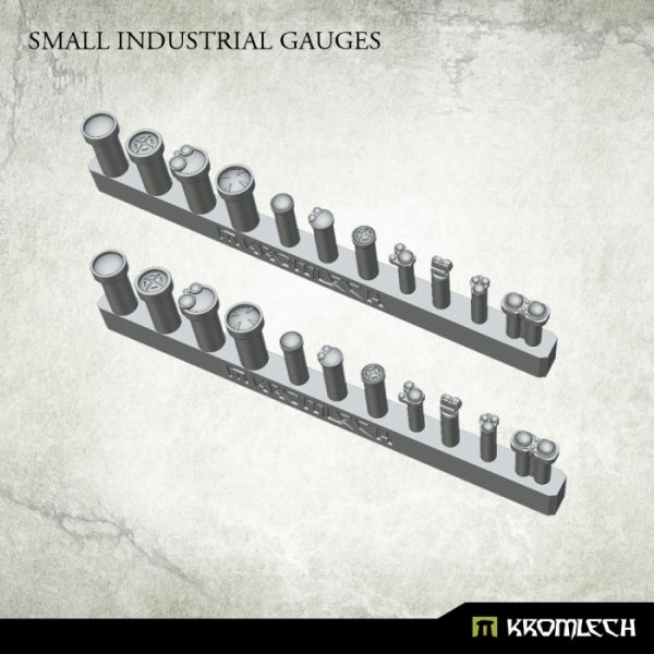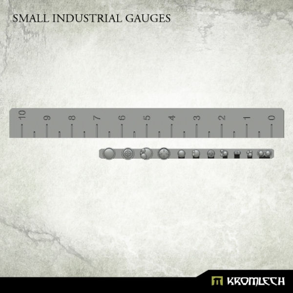 This set contains 22 high quality resin Small Industrial Gauges that can be used to decorate miniatures, bases or scenery. Designed to fit 28mm heroic scale.