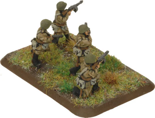 includes twenty-one Plastic SMG Teams, two Commanders and Unit Leaders, two Flame-thrower teams, one Kommisar team and three Unit cards.