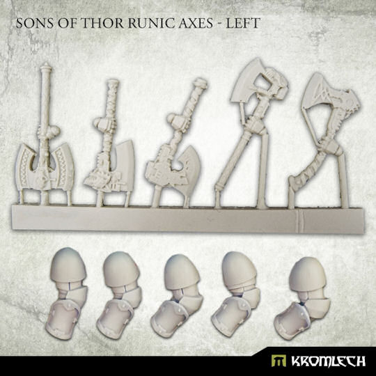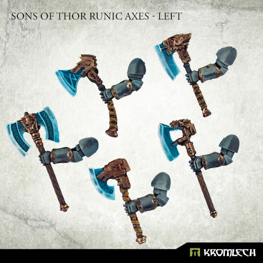 This set contains 5 high quality resin Sons of Thor Runic Axes with 5 corresponding left arms. Designed to fit heavy armoured troopers in 28mm heroic scale. Great for representing heavy assault squads of Prime Legionaries. May require some assembly, supplied unpainted.