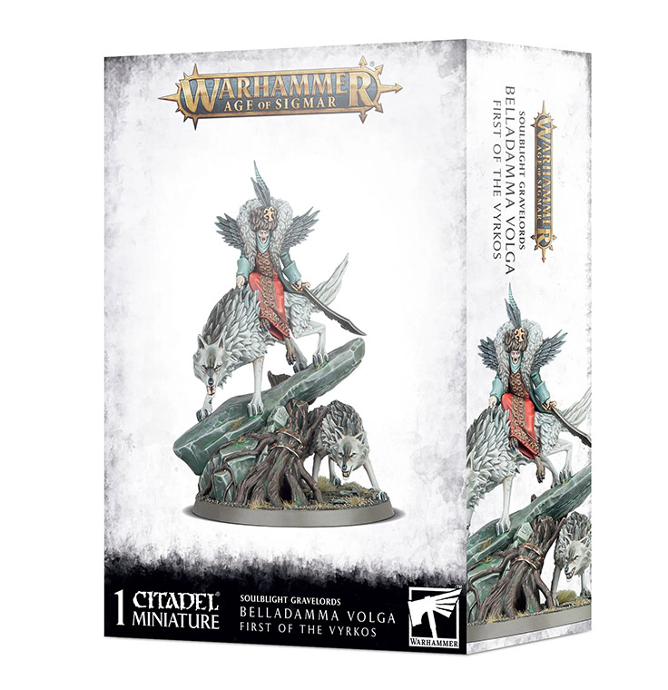 This 27-part plastic kit makes one Belladamma Volga model (including her mount and accompanying wolf) and comes supplied with a Citadel 60mm Round Base.