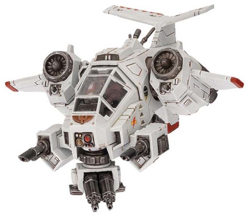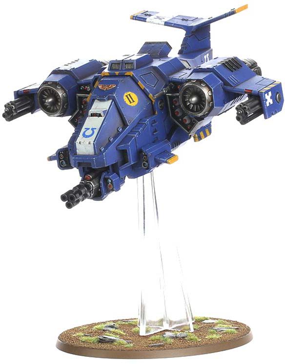 Stormhawk Interceptors används för att säkra luftrummet över slagfältet och skydda Space Marines styrkor från fiendens flyg.