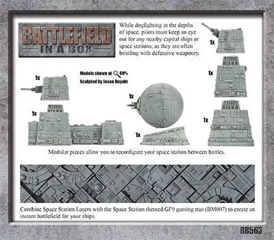 While dogfighting in the depths of space, pilots must keep an eye out for any nearby capital ships or space stations, as they are often bristling with defensive weaponry. Contains 3 pre-painted cannons and laser towers.