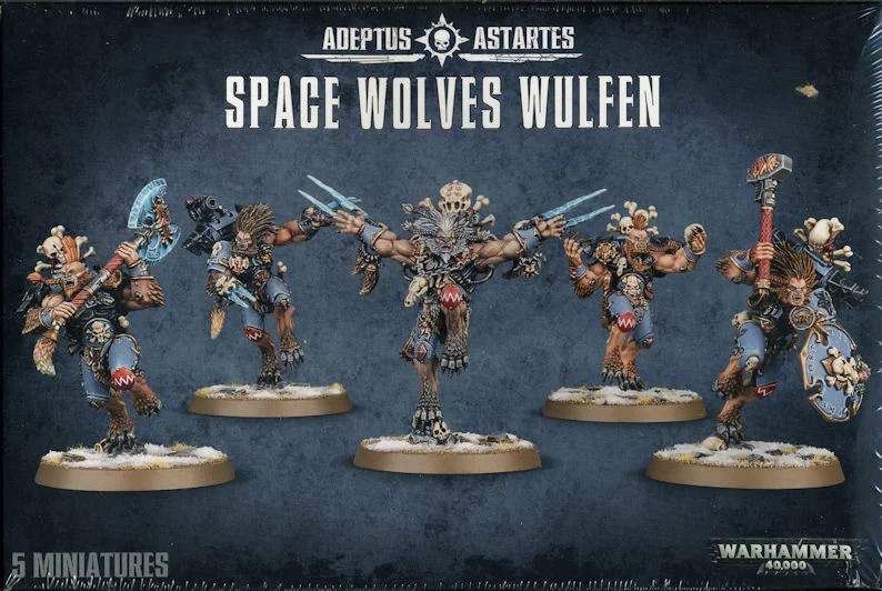 Wulfen är de Space Wolves som helt fallit för den hemska förbannelsen som det genetiska fröet Canis Helix bär på. Deras kroppar blir groteskt förvandlade och de blir allt mer inriktade på att jaga och förgöra sina fiender med knappt kontrollerad vrede. Denna förpackning innehåller 165 delar för att montera 5 Wulfen. Man kan välja på en rad olika delar såsom Thunderhammer & Shield, Great Frost Axe eller ett par Frost Claws. Dessutom kan man montera antingen ett trofé-rack på deras ryggsäckar eller en Stormfrag auto launcher. En wulfen kan monteras som Pack Leader i en unik pos, med speciella Frost Claws. Boxen innehåller dessutom en rad olika dekorativa delar för att få Wulfen att se ut precis som du själv vill. 40 mm runda baser medföljer. OBS! Kräver montering och målning - verktyg, lim, penslar, färg mm ingår EJ men kan köpas separat i vårt sortiment av TILLBEHÖR.