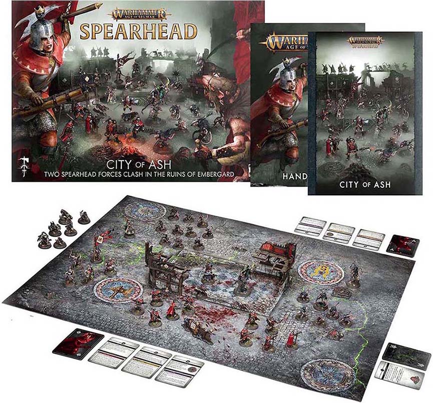 City of Ash är en komplett startbox med två Spearhead-arméer, terräng och spelmaterial för snabba strider i Warhammer Age of Sigmar.