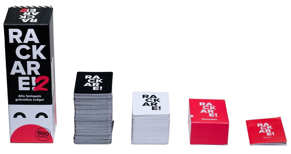 Rackare 2 - Alla Festspels Gränslösa Svåger är ett dråpligt enkelt partyspel som garanterar skratt och underhållning. Med 600 nya kort kombinerar det ett nytt spel och en expansion i ett och samma paket. Reglerna är enkla: varje omgång lägger en spelare ett vitt kort och de andra svarar med sitt bästa svarta kort. Spelaren som placerade det vita kortet väljer den roligaste kombinationen. Den som först uppnår tio poäng vinner spelet och får titeln "en riktig liten rackare".