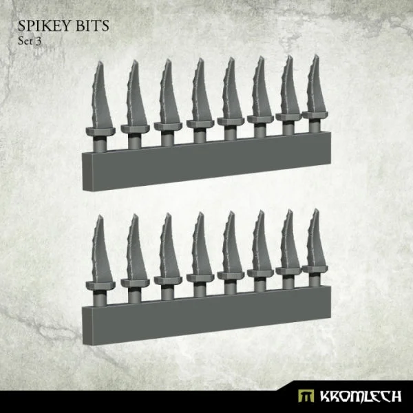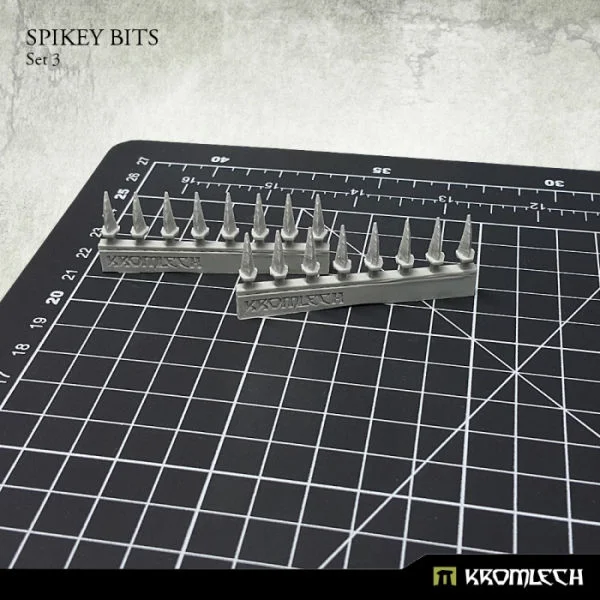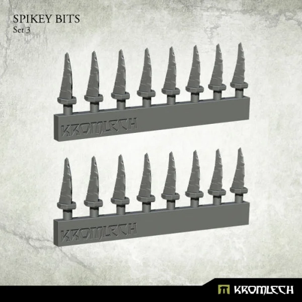 This set contains 16 high quality resin Spikey Bits that can be used to decorate miniatures, bases or scenery. Designed to fit 28mm heroic scale. Each is approximately 13mm long.