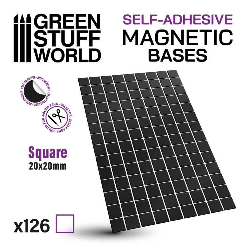 Self-adhesive flexible magnetic sheets provide a quick and simple way of magnetizing your wargames units without the necessity of drilling bases and gluing magnets. Square, rectangular, round, and oval most common shapes are available in a variety of sizes, but also as complete sheets to be cut to convenience with a pair of scissors or a craft knife. Use them alone, together with rubber steel sheets, or together with Neodymium Magnets depending on the attraction strength needed. Using magnetically-based figures allows you to field large units on the tabletop on their movement trays as one item. This removes the time spent moving figures one-by-one across the table. Even if the trays are knocked or tipped, you have a good chance of your figures staying attached and undamaged. Applying is very easy. Simply take the protective paper off the underside of the magnetic foil and stick it to the bottom of the bases. The thickness of the stickers is 0,9mm.