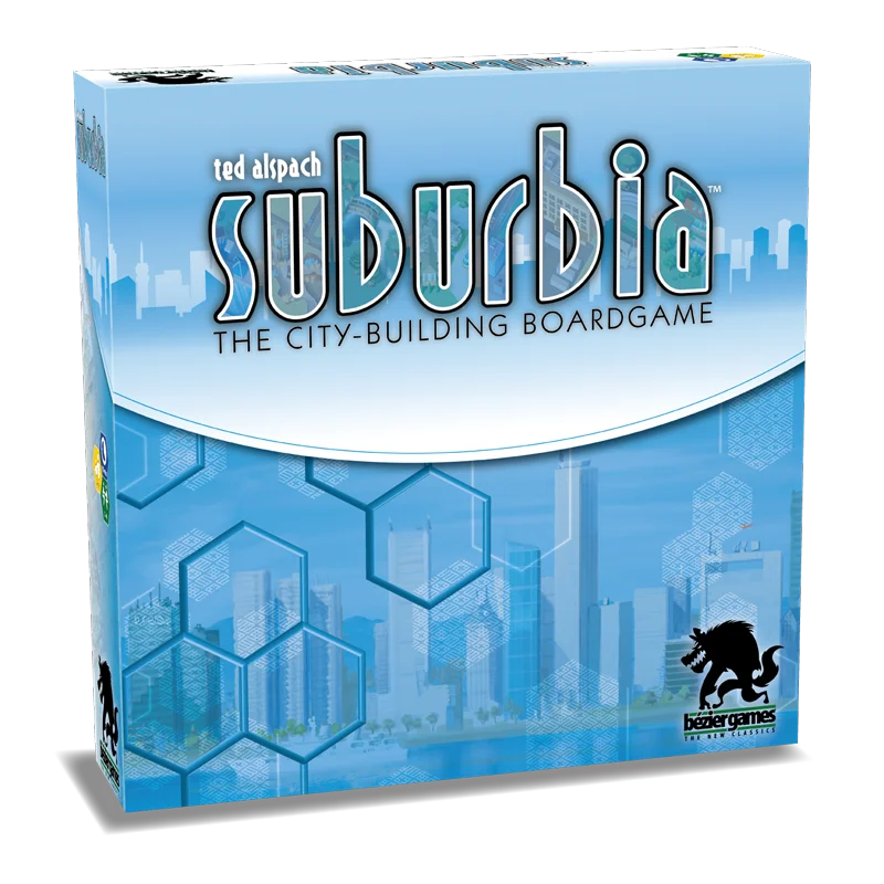 Suburbia is a tile-laying game in which each player tries to build an economic engine and infrastructure that will be self-sufficient, and eventually become both profitable and encourage population growth. As your income increases, you'll have more cash to purchase better buildings, such as an international airport or a high rise office building. As your reputation increases, the population will grow as well.