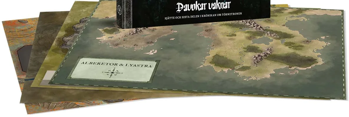 Fyra dubbelsidiga kartor som tillsammans visar ett antal äventyrslandskap som presenteras i modulen Davokar vaknar. En av kartorna är (864x558 mm) och de övriga mindre (432x279mm).