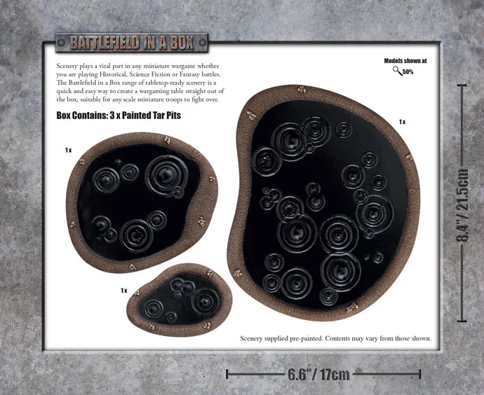 TILLBEHÖR TERRÄNG & LANDSKAP Vattendrag Tar Pits Lägg till en bevakning så meddelar vi dig så snart varan är i lager igen. Produkten är nu bevakad Vi meddelar dig så snart varan är i lager igen. E-postadress Lägg till bevakning Dina personuppgifter behandlas i enlighet med vår integritetspolicy. Tar Pits Journey back in time, or to a land that time forgot where Tar Pits line the landscape. Contains: 3 x Painted Tar Pits. Snabba leveranser Fraktfritt över 1000 kr Alltid 30 dagars öppet köp FIGURSPEL BRÄDSPEL & SÄLLSKAPSSPEL KORTSPEL ROLLSPEL PUSSEL FÄRG, SPRAY OCH PENSLAR TILLBEHÖR TÄRNINGAR TERRÄNG & LANDSKAP REA OCH UTFÖRSÄLJNING Sverige Svenska SEK