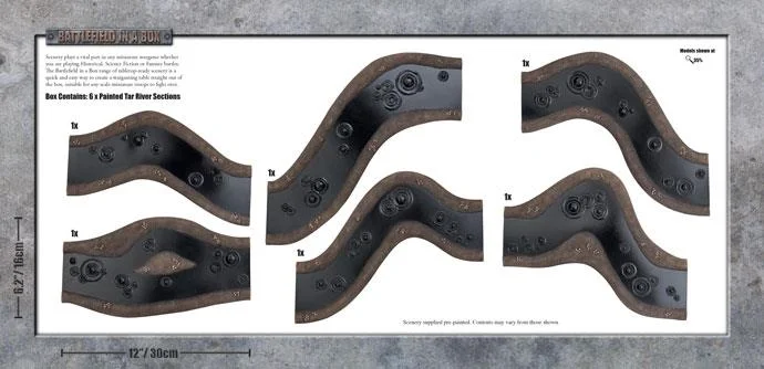 A river of hot tar, or some other black bubbling liquid, surely this is not something that you want to swim in.... Contains: 6 x 12"/30cm Painted Tar River Sections