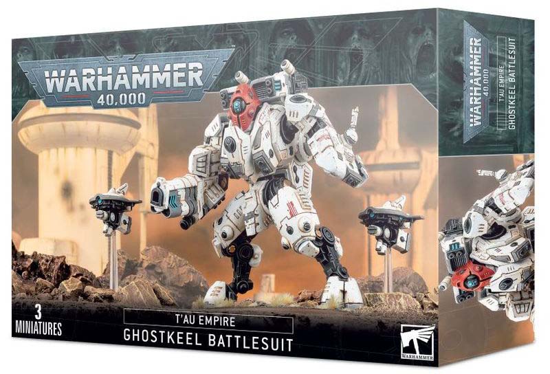 XV95 Ghostkeel Battlesuit är en massiv och dödlig krigsmaskin som representerar det yttersta inom T’au-imperiets militära teknologi. Den styrs av en noggrant utvald pilot och kan dyka upp från ingenstans, leverera förödande eldkraft och försvinna igen i stridens kaos innan fienden hinner reagera.