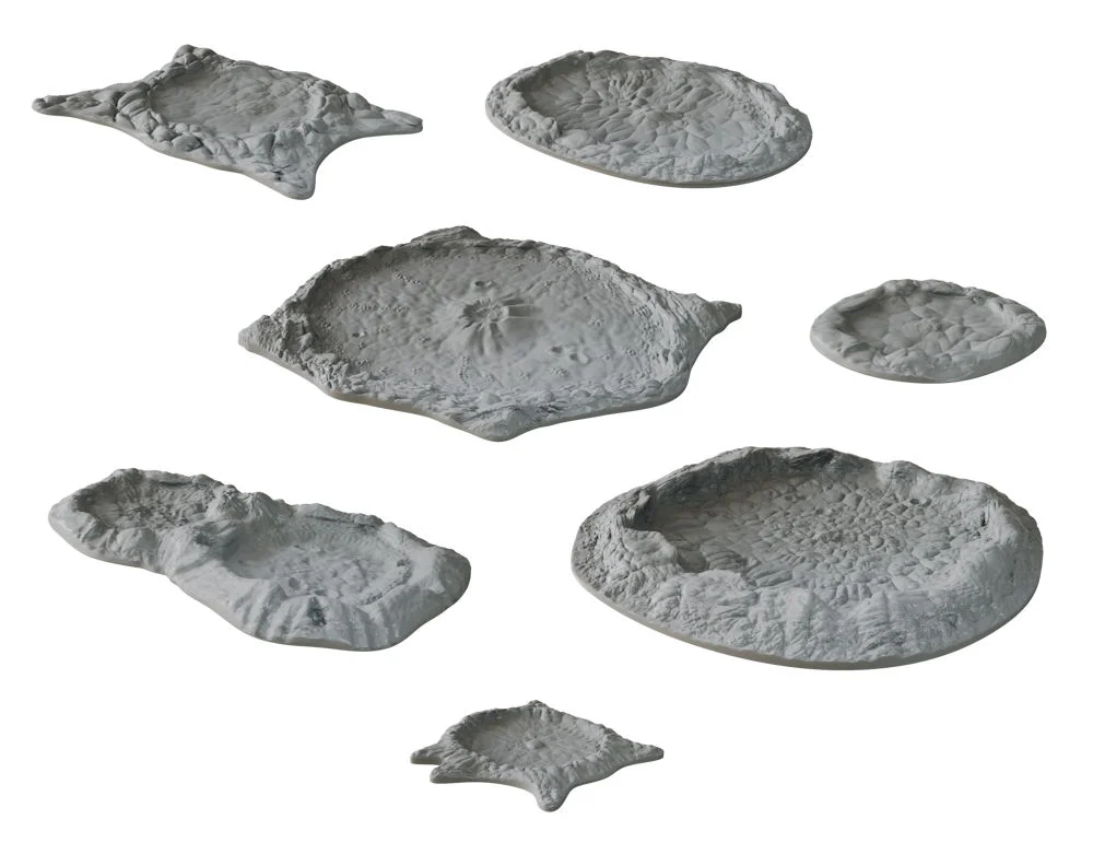 A set of craters in various sizes – perfect for making a blasted landscape, or painting and filling to create lava, acid or slime pools!