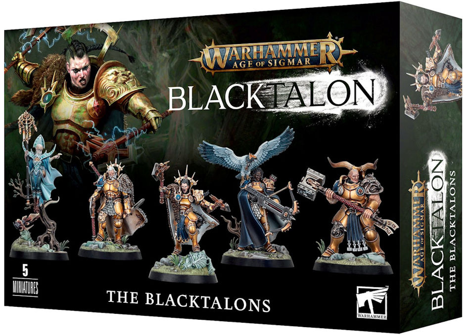 This multipart plastic kit builds the Blacktalons, Sigmar’s premier hunters, consisting of Neave Blacktalon, Hendrick, the Silver Wolf, Rostus Oxenhammer, Shakana Goldenblade, and the Idoneth Deepkin Soulscryer Lorai. Together, they make a unit capable of taking down even the mightiest foe. Each of the Stormcast Eternals includes two head options – one bare and the other either helmeted or cloaked, allowing you to personalise your unit.