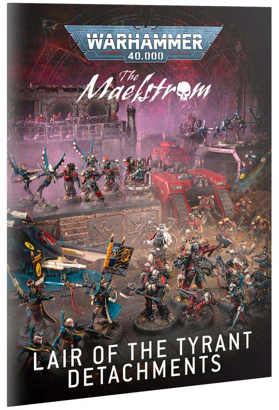 – The Maelstrom: Lair of the Tyrant – Detachments – A 16-page softcover booklet including two new detachments for Chaos Space Marines (Huron's Marauders and Renegade Warband) and Aeldari (Eldritch Raiders and Corsair Coterie), one for the Orks (Freebooter Krew) and another for the Leagues of Votann (Mercenary Oathband).