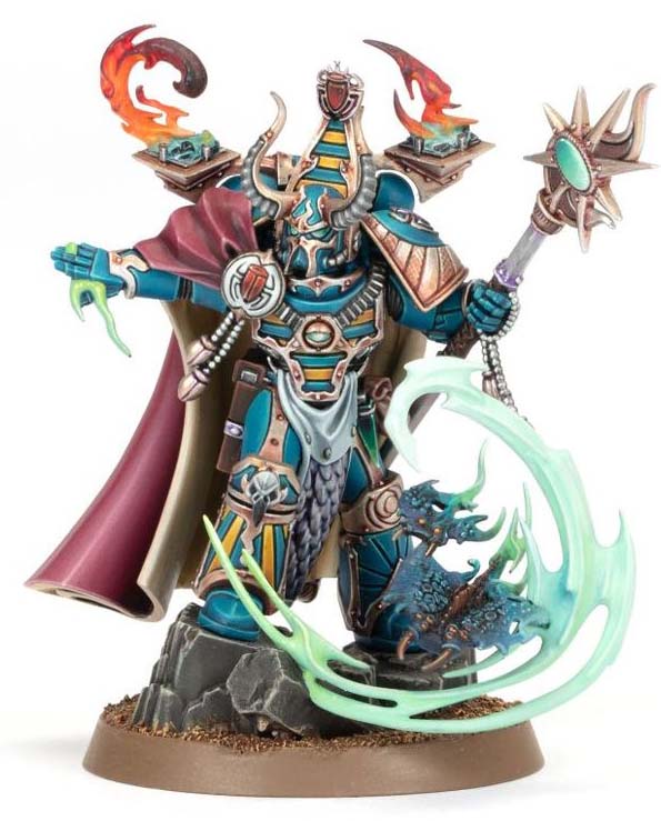 The Thousand Sons are masters of the Warp and infernal sorcery. In battle, the Scarab Occult Terminators march forward in eerie lockstep, spewing tainted fire and cutting down enemies foolish enough to test them. Led by Sorcerers who wield their powers to annihilate foes with gouts of warpflame, they are often accompanied by bizarre, mutated, and tentacled beasts.