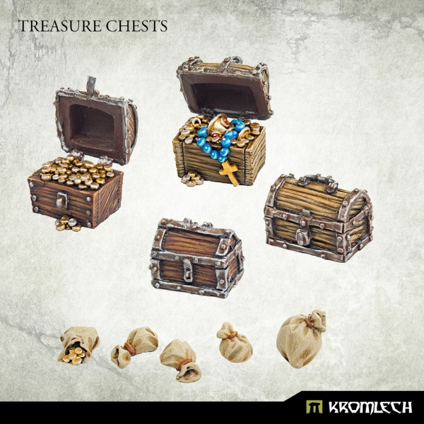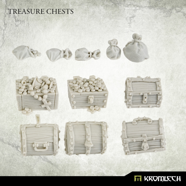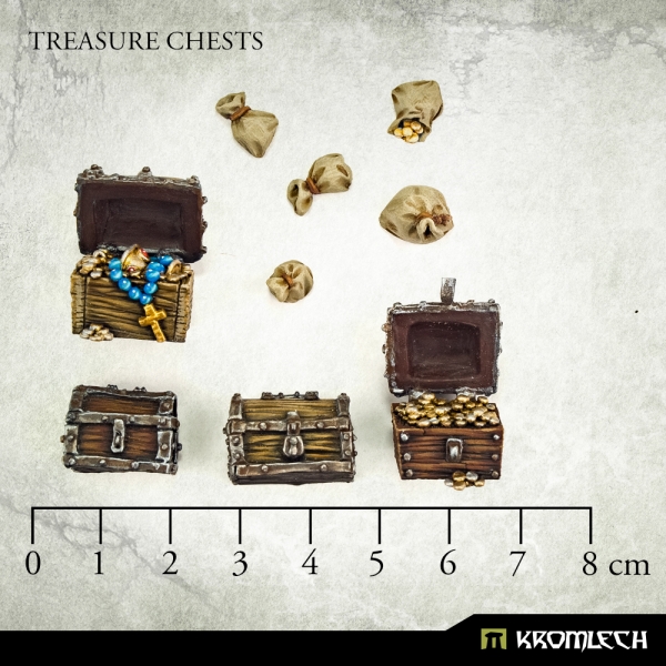 This set contains 2 closed chests, 2 open chests and 5 sacks - all made of high quality resin,itting fantasy and medieval settings. It can be used to convert miniatures, decorate bases and scenery or as part of dioramas. Designed to fit 28mm heroic scale.