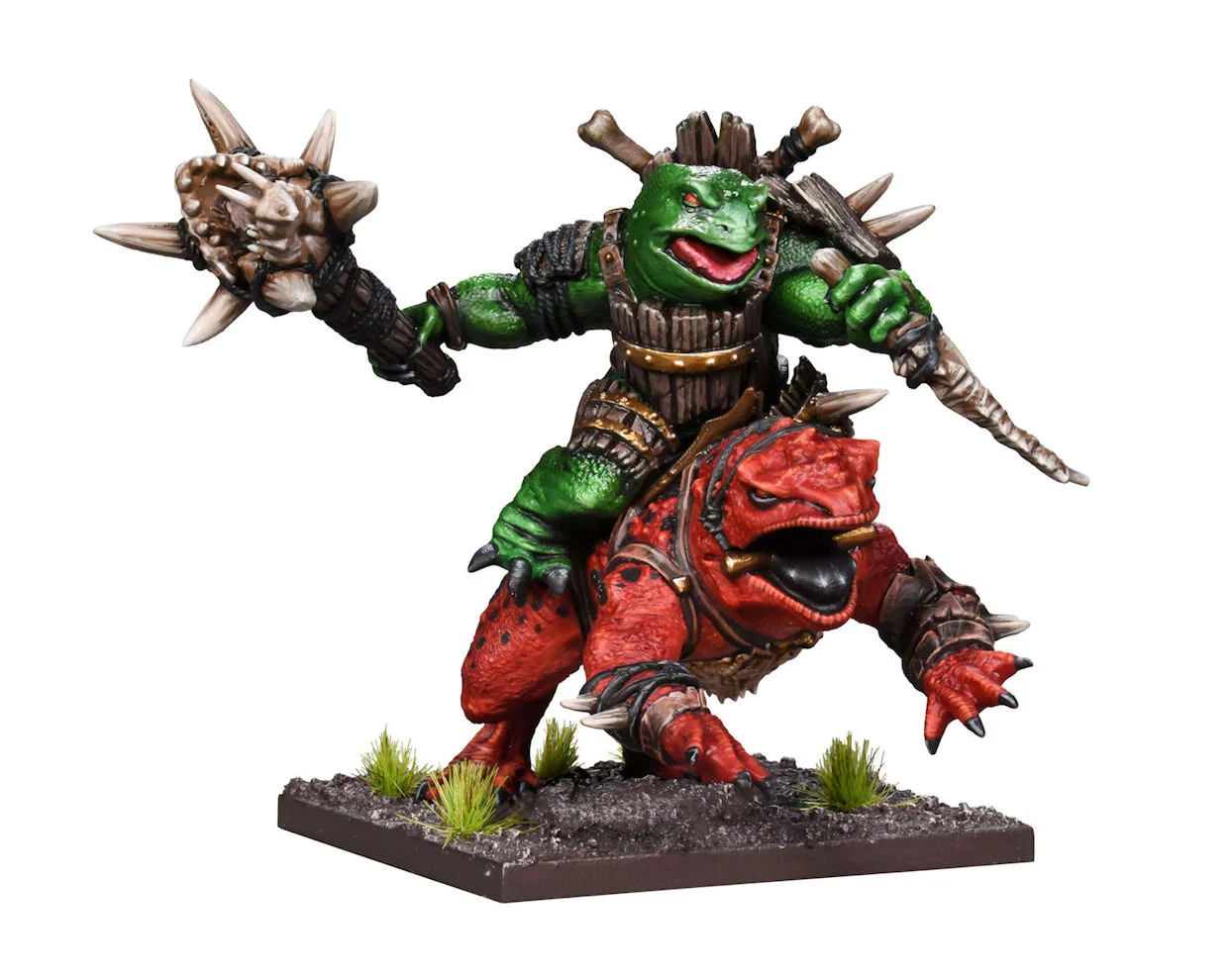 Pondwardens are tough, proud, and solitary individuals, descended from a species of Trogfyre Toad. They have a tradition of passing down their armour to their oldest male offspring, who then has a solemn duty to live most of the year alone and protect the family territory. The armour is made of iron-wood, and the Wardens bond with their giant mounts, forming a formidable partnership.