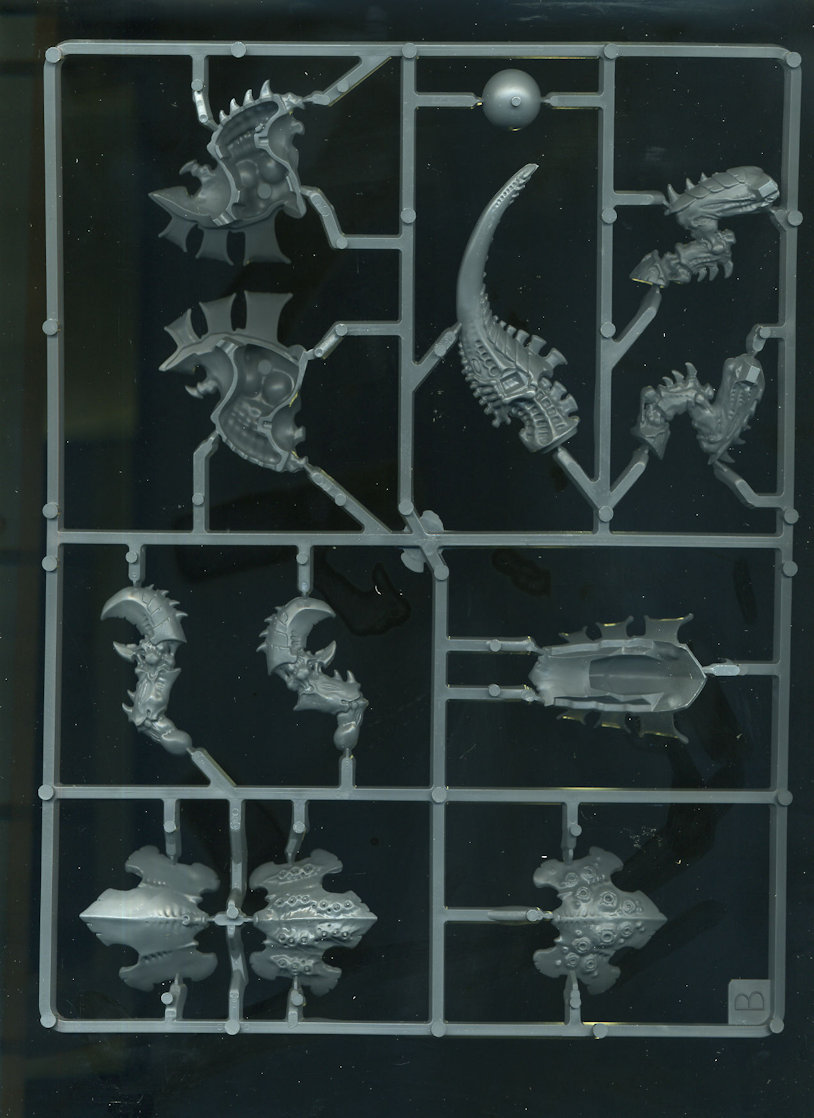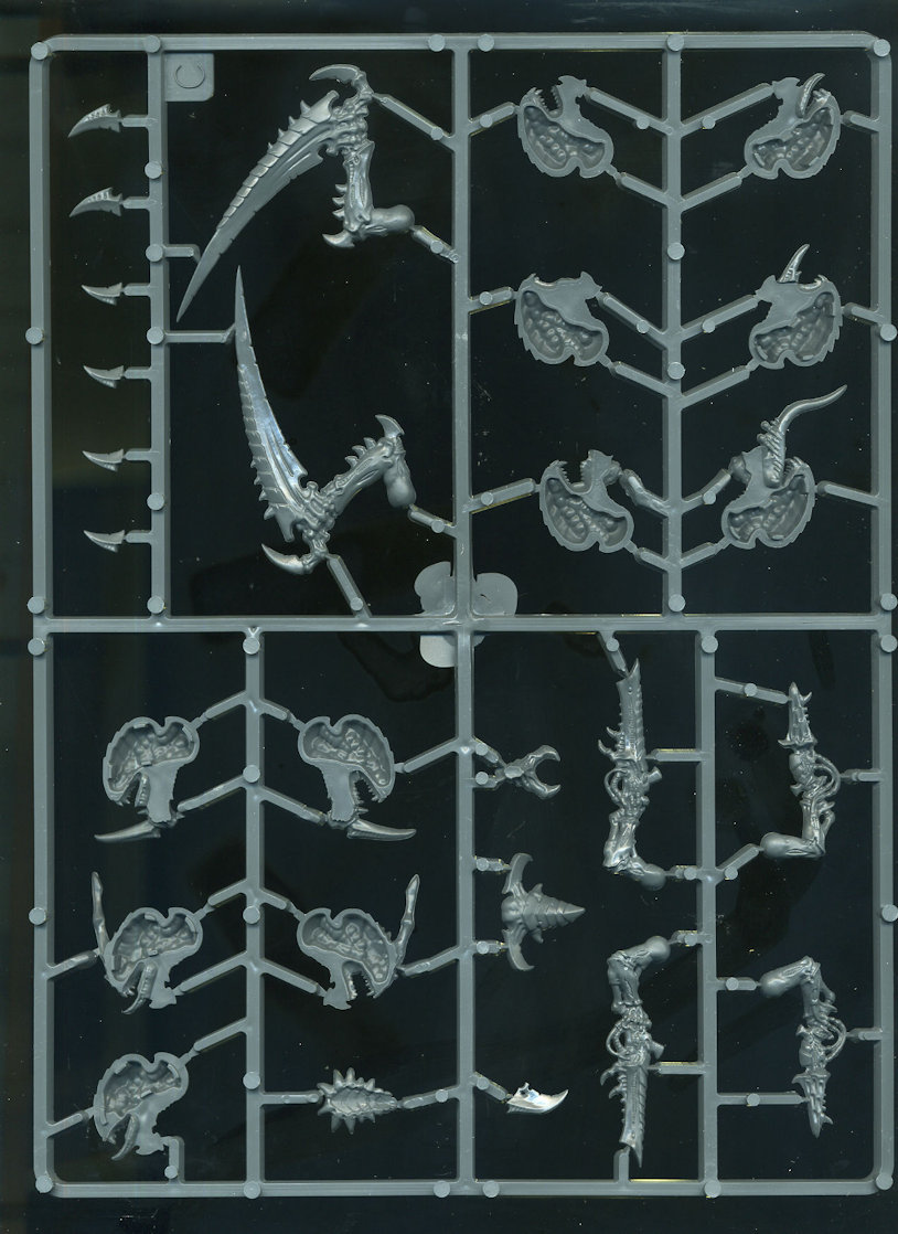 This plastic kit contains 110 components with which to make 2 Carnifexes that can be assembled as Old One Eye’s Brood, a Thornback Brood, a Carnifex Brood or a Screamer-Killer Brood.