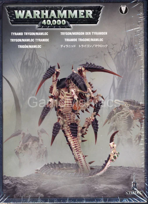 Trygon är en kolossal serpentin varelse vars järnhårda ryggsköld är skottsäker mot allt utom de tyngsta vapen och vars gigantiska klor kan skära igenom även den tuffast stridsvagn. I strid genererar en Trygons skiftande massa dödlig bio-elektrisk energi som den släpper loss mot fienden i grymma blixtbågar. Mawlocs är enorma maskliknande varelser med massiva rakknivstandade käftar som fungerar som ingångar till deras lika stora strupar. De flesta av Mawloc offer sväljs hela, för att senare sakta och plågsamt smältas. Det som är för stort att svälja plattas till av Mawloc's muskulösa svans före de förtärs. Denna box innehåller en stor plastminiatyr som kan monteras som antingen en Tyranid Trygon eller Tyranid Mawloc. Detta 97-delars set innehåller en rad ytterligare komponenter som gör att du kan anpassa din modell. Levereras med en stor oval bas.