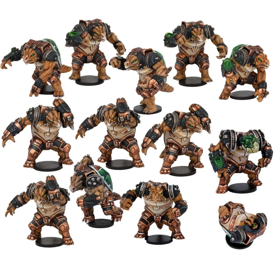 The Avalanchers haven't been around for long, but their hard-hitting play style has already won them plenty of fans. The fact that they're giant teleporting reptiles doesn't hurt, either! This set contains 12 premium plastic and metal models, including: 5 Jacks 5 Guards 1 Keeper 1 Prone Figure Clear Plastic Hexagonal Bases Includes alternate poses!