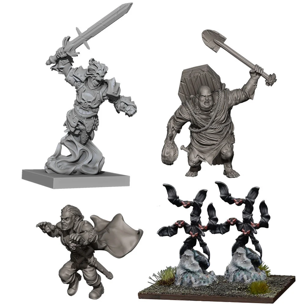 Undead warbands often enlist some of the more sentient of the cursed beings to join their raids on settlements. From Vampires surrounded by swarms of bats, to the deformed, gluttonous ghouls known as Crypt Gougers, to the terrifying Barrow Wights ; all are eager to shed the blood of the living. Contents: 1 Resin Vampire Halfling, 1 Resin Vampire Bat Swarm, 1 Resin Crypt Gouger, 1 Resin Barrow Wight,, and 4 Vanguard Cards. Supplied unassembled and unpainted