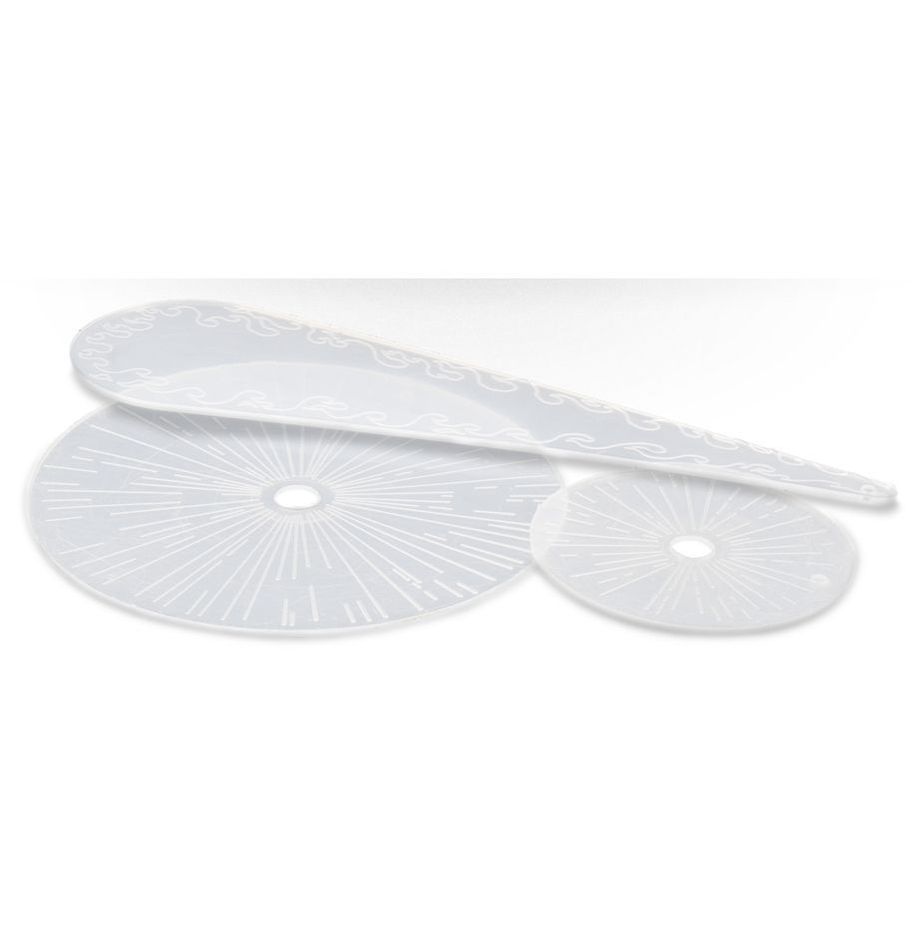 This set includes 1 teardrop-shaped flame template, a circular blast marker with a 3" diameter, and a circular large blast marker with a 5" diameter, presented in clear plastic for ease of use in games of Warhammer: The Horus Heresy, Necromunda, Warhammer the Old World and Adeptus Titanicus.