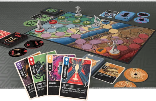Battle of Legends, Volume One features four heroes. King Arthur sacrifices cards to power up his attacks and gets some timely assistance from Merlin's magic. Alice is back from Wonderland with a giant vorpal blade and the Jabberwock by her side as she grows and shrinks to gain advantages on attack and defense. Medusa is happy to attack from range and let her harpies hound you, but just one devastating glance could end the battle quickly. Sinbad grows in power as he gains experience on each of his voyages.