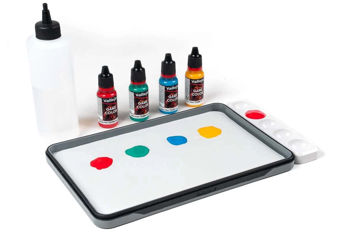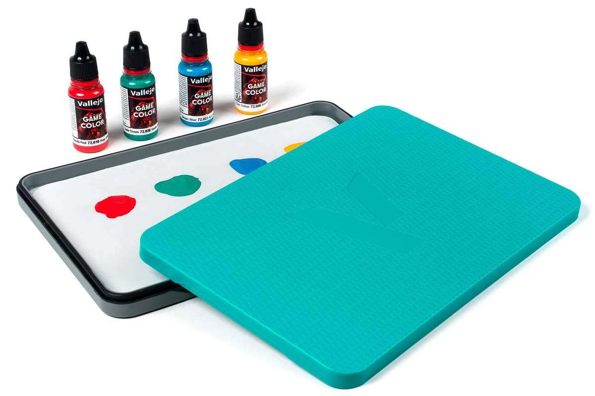 The wet palette is a tool used mostly by miniature painters and modelers to keep acrylic paints moist and workable for longer periods of time.