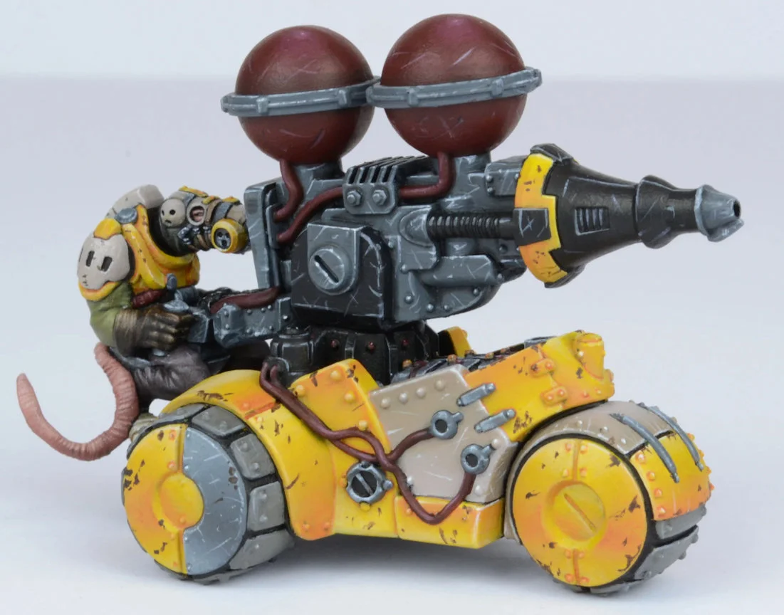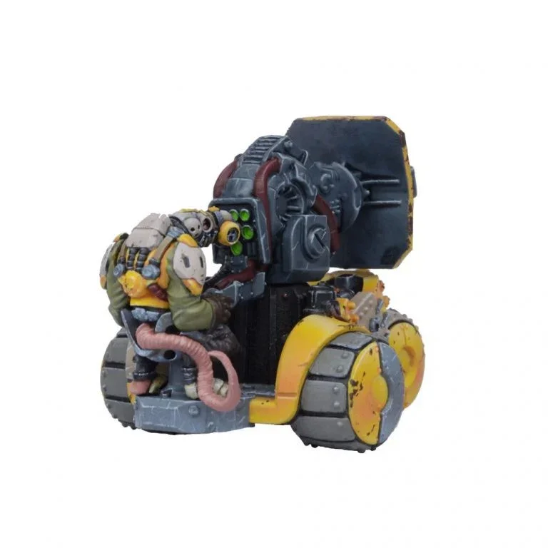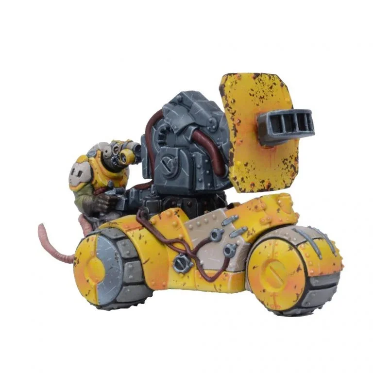The heaviest and most dangerous radioactive laser weapons and most potent chemical throwers are mounted on more or less reliable motorised platforms. Contents: 1 Plastic Rumbler and 2 Plastic Crew. Miniatures supplied unassembled and unpainted. Requires superglue.