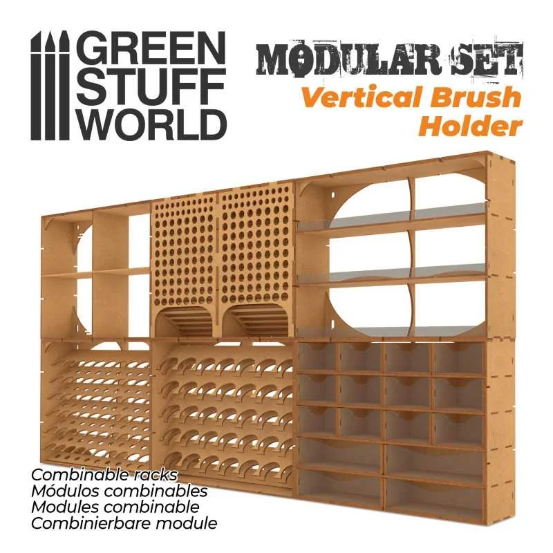 Vertical brush holder made of high-quality MDF wood. Multiple modules can be combined horizontally and vertically to increase the organizing space. It is delivered unassembled but is very easy to fix together. We recommend using white glue for a more sturdy finish.