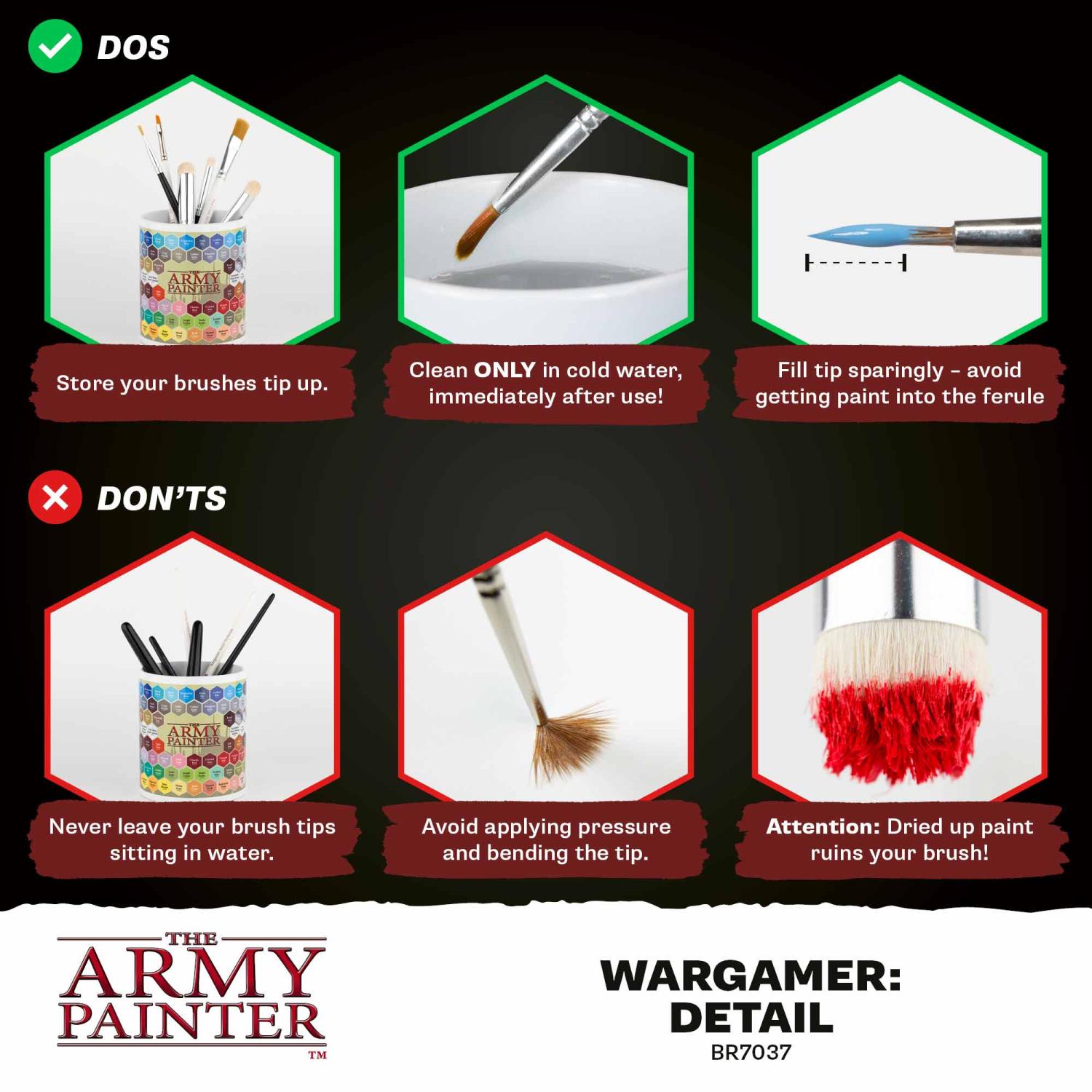 The Size 0 Detail brush with Bionic Bristles has a fine tip to add delicate highlights to the smallest parts of your miniature.
