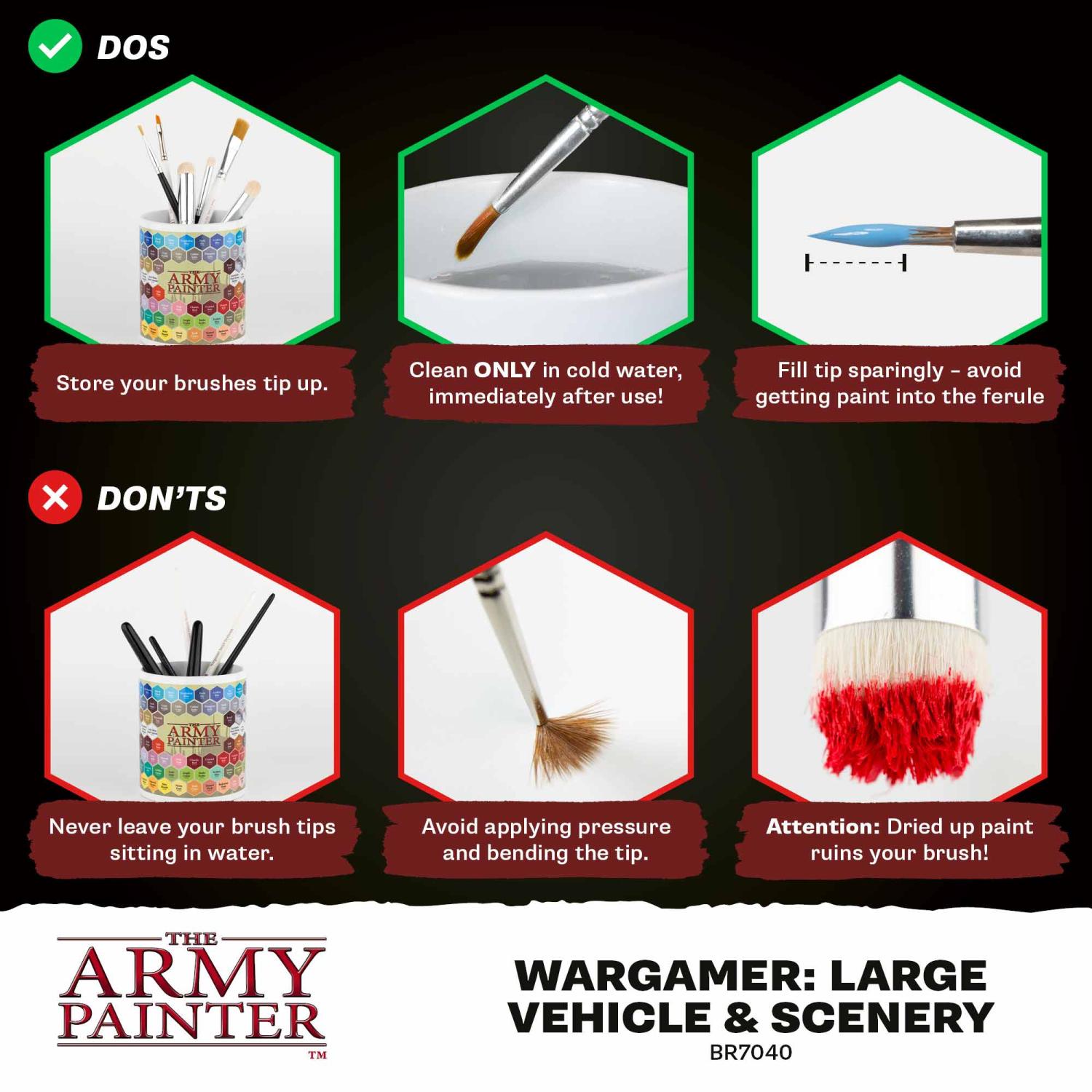 Bring out the edges and highlights on anything from vehicles to terrain and scenery with the Large Vehicle & Scenery brush. Its flat, stiff tip will covera lot of ground.