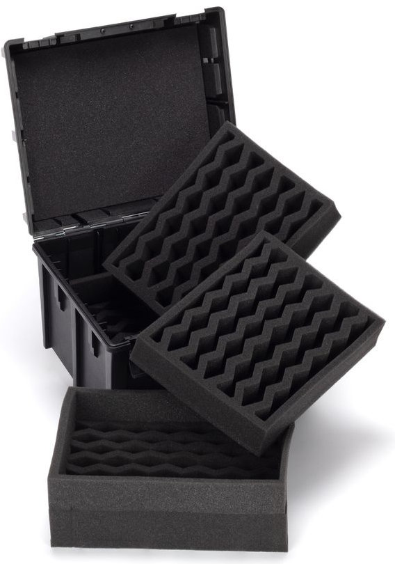 Packing and unpacking the case is absurdly quick and easy – any model, however pointy, placed anywhere within the channels will be protected as well as if you’d spent countless hours hacking away at a custom fit. You’ll free up more time to concentrate on games, painting, or just showing off your miniatures collection. The channel foam is as efficient a use of space as possible, allowing you to store more models more safely than any other case.