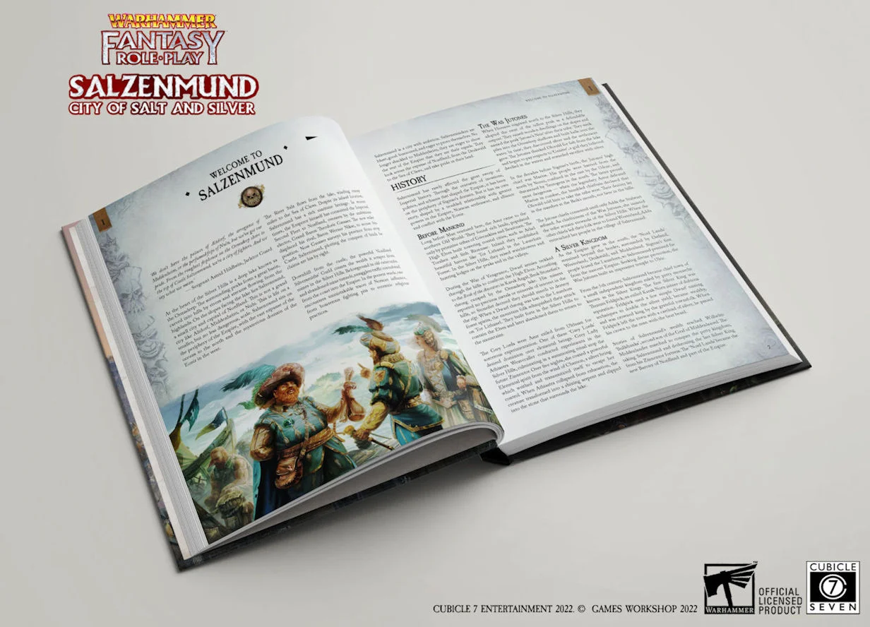 Salzenmund promises opportunity and excitement to adventurous souls. Explorers depart from the city to trade with fur-clad Norscans or brave the wide sea to Lustria. But the ruling Gausser family, newly installed and ambitious, threaten the stability of the Empire. The head of the family talks of a reconquest of the Wasteland and defiance of their old masters in Middenheim. In the taverns by the docks, vicious and crooked folk conspire in smuggling and piracy. Worse still, the honeyed whispers of forbidden cults entice the truly desperate into the worship of Chaos.