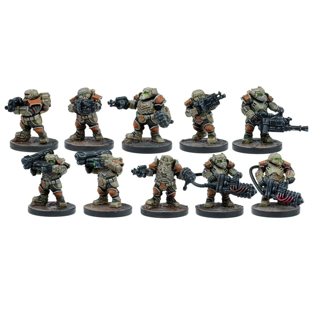 Warpath & Firefight Quick Start Guide, Command Dice, Counters, 5 Enforcers, 5 Peacekeepers, 5 Pathfinders, 1 D.O.G. Drone, 1 Enforcer Captain, 10 Steel Warriors, 6 Forge Guard, 1 Jotunn