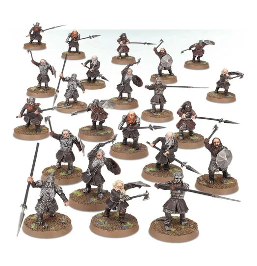 This plastic kit contains 60 components and 24 25mm round bases with which to make 24 Warriors of Erebor. These miniatures are supplied unpainted and require assembly.