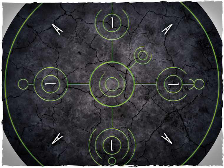Objective markers compatible with WH40K miniature game. Features: – Manufactured from mousepad material – synthetic cloth with a 2mm thick rubber foam backing – Dimensions: 19,24 cm ( ~7.57 inches) in diameter: 40mm inner area plus 3 inches surrounding control area – The paint are soaked into the material and will never scratch or fade off – Non slippery backing to keep the markers on the table – Instant marker flatness and smooth surface – A set of 8 pcs, each has number and letter identifiers