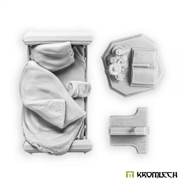 Even a wizard has to rest sometimes, exhausted by the constant work and dealing with powers of beyond. Still, as he lays down, there is always a book or two within a reach just in case the sleep brings out some new ideas or a breakthrough thought that needs to be checked and written down immediately. This set contains high quality resin models of Wizard's Bed along with a nightstand. Designed to fit 28mm heroic scale wargames. Supplied unpainted and require assembly.