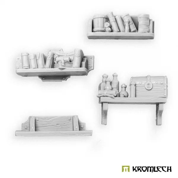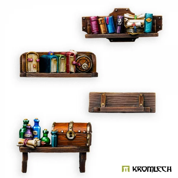 There is no elf on this shelf. There are however more and more books. Knowledge is power - everyone knows that. And the power makes the wizard! This set contains four high quality resin model of Wizard's Bookshelves. Designed to fit 28mm heroic scale wargames. Supplied unpainted and may require assembly.