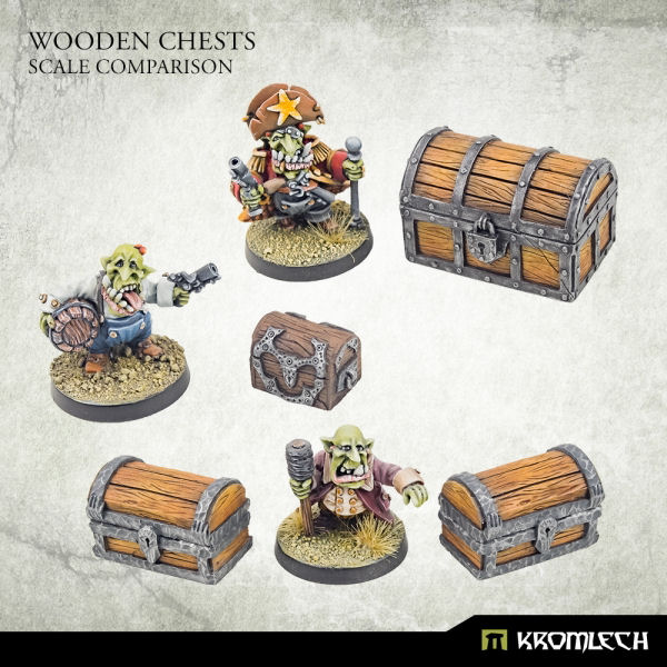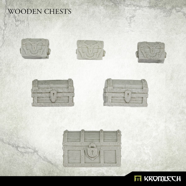This set contains high quality resin Wooden Chests designed to fit fantasy 28mm heroic scale. Includes 3 small, 2 medium and 1 large chest. Please note that models seen on pictures are not part of this set.